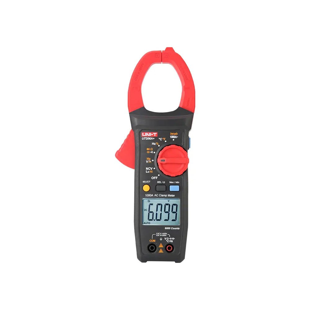 UNI-T UT206A+ используется для наладки и ремонта промышленного оборудования, где важно не только знать рабочий ток, но и оценить пусковые характеристики и тепловой режим. Прибор соответствует категории безопасности CAT III 600 В / CAT II 1000 В, имеет защиту IP54 и устойчив к падениям с высоты 2 метров.
