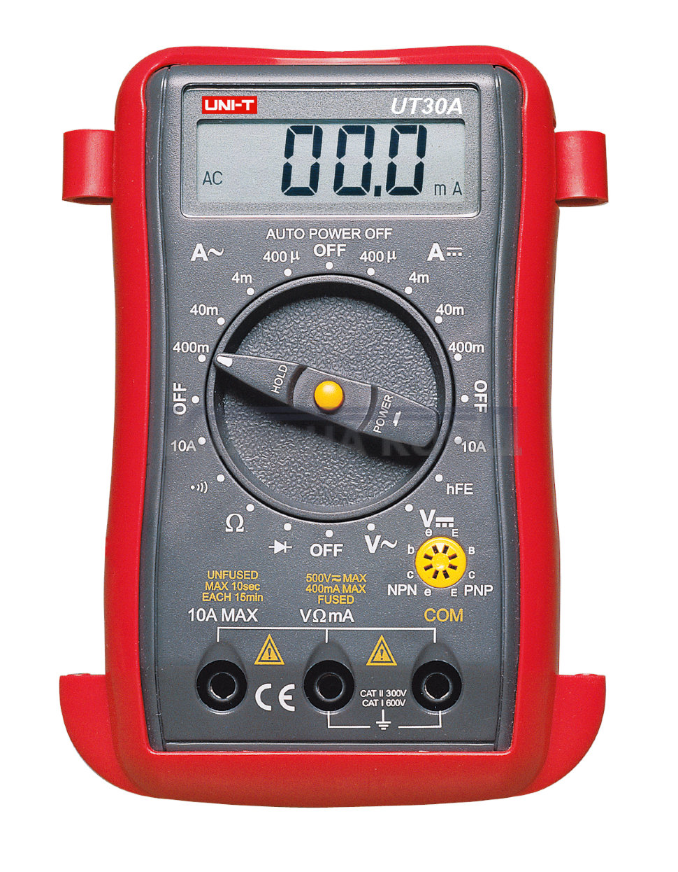 Мультиметры UT 30 Предназначены для измерений постоянного и переменного напряжения, постоянного тока, сопротивления, тестирования диодов, транзисторов и прозвона цепей. Работают от батареек. Гарантия точности – один год после калибровки при температуре 18 - 28°С и относительной влажности 80%. Защита от перегрузки.
