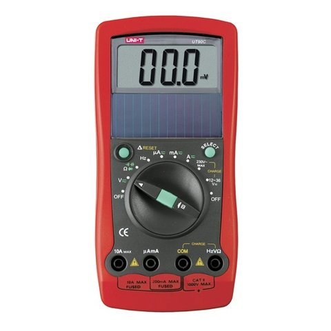 Мультиметр UNI-T UT90C измеряет постоянный и переменный ток, постоянное и переменное напряжение, сопротивление, частоту, и может использоваться для прозвонки цепи и проверки диодов.