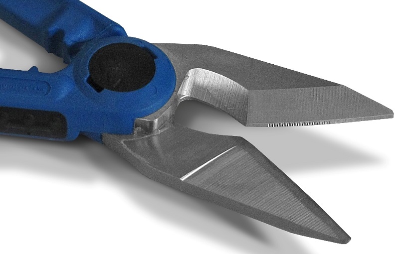 - Ребристые вставки-упоры на рукоятках позволяют прижимать ножницы ладонью к поверхности стола для увеличения усилие реза