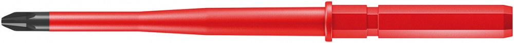 Сменная отвёртка с зауженным стержнем и защитной изоляцией, с помощью которой можно достать расположенные в глубине винты и пружинные зажимы. Инструменты проверены поштучно по стандарту IEC 60900. Поштучная проверка в водяной бане под напряжением 10000 В для безопасной работы на оборудовании с максимально допустимым напряжением 1000 В. Наконечник Wera Black Point обеспечивает точность работы и оптимальную защиту от коррозии.