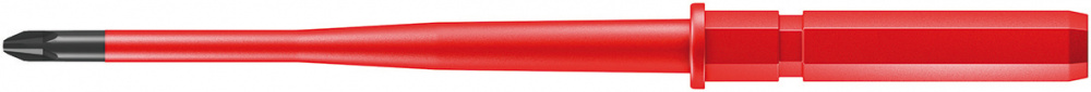 Сменная отвёртка с зауженным стержнем и защитной изоляцией, с помощью которой можно достать расположенные в глубине винты и пружинные зажимы. Комбинированный профиль "шлиц/Phillips", прежде всего для работы с присоединительными зажимами, предохранительными коробками, переключателями, реле. Инструменты проверены поштучно по стандарту IEC 60900. Поштучная проверка в водяной бане под напряжением 10000 В для безопасной работы на оборудовании с максимально допустимым напряжением 1000 В. Наконечник Wera Black Point обеспечивает точность работы и оптимальную защиту от коррозии.