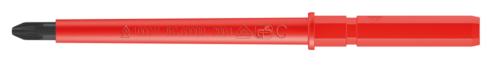 Сменная отвёртка VDE для системы "Одна ручка – много насадок" Kraftform Kompakt VDE для моментальной смены насадок без специального инструмента. Рабочие концы проверены поштучно по стандарту IEC 60900. Поштучная проверка в водяной бане под напряжением 10000 В для безопасной работы на оборудовании с максимально допустимым напряжением 1000 В. Наконечник Wera Black Point обеспечивает точность работы и оптимальную защиту от коррозии.