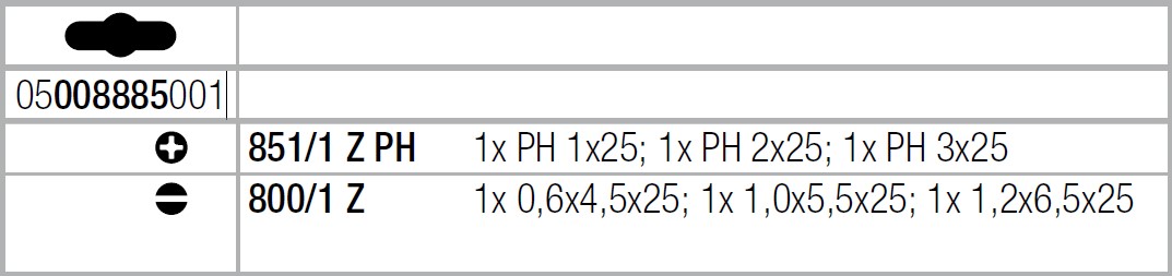 - В набор включены 6 битов, закалённые до вязкой твёрдости, универсальные, расположенные в магазине в ручке