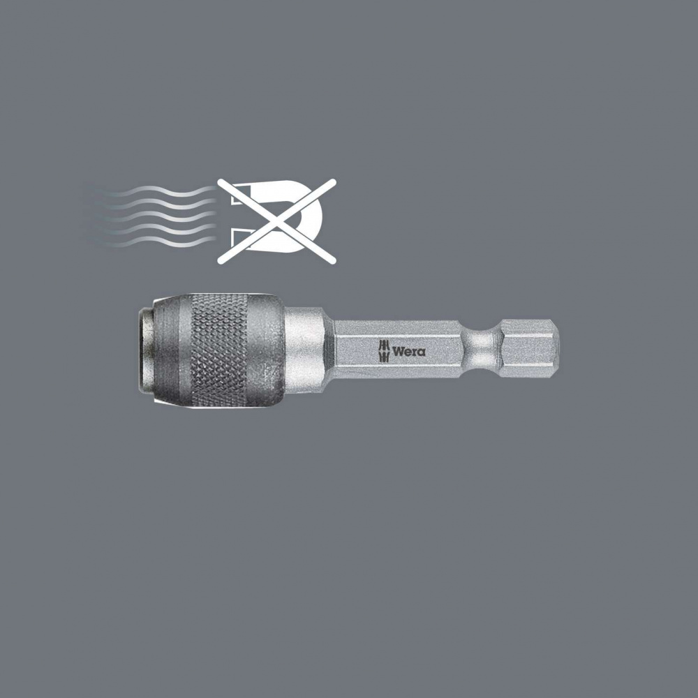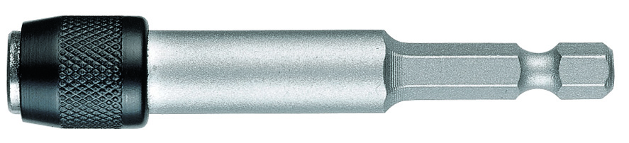 Универсальный держатель для битов с шестигранным хвостовиком 1/4" по стандарту DIN ISO 1173-C 6,3. С быстрозажимным патроном для моментальной смены битов. Привод: 1/4" шестигранник подходит для использования в шуруповертах с патроном по стандарту DIN ISO 1173-F 6,3.