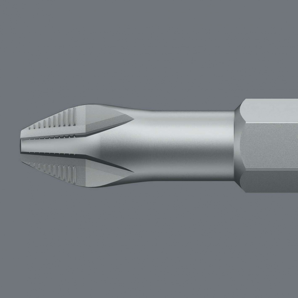 Высококачественные биты с торсионной зоной, в которой гасятся пики кинетической нагрузки. За счёт этого значительно возрастает срок службы изделия. С насечками (Anti Cam-Out Ribs, ACR) против выскальзывания бита из винта. Закалённые до вязкой твёрдости, для универсального применения. Шестигранный хвостовик 1/4", подходит для держателя по стандарту DIN ISO 1173-D 6,3.