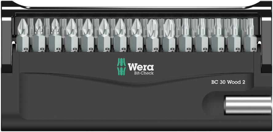 Набор в прочном футляре Bit-Check фирмы Wera. Наборы Bit-Check обеспечивают полный обзор всех размещённых инструментов. Лишние в работе биты просто возвращаются на свое место в футляре, чтобы не потерялись. Простая переноска, например, в кармане рубашки. Набор включает универсальный держатель с сильным постоянным магнитом для битов с шестигранным хвостовиком 1/4". Для установки в шуруповерт или патрон электродрели. С возможностью вертикального размещения многокомпонентный футляр Bit-Check для долговременного надёжного хранения битов.