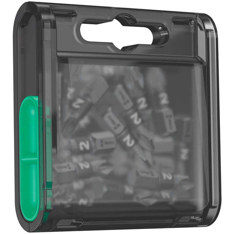 - Система Bit-Box: Сдвижная крышка служит для простого и точного по количеству извлечения битов и для возвращения их в футляр; простой визуальный контроль количества хранящихся битов через прозрачную заднюю стенку футляра.