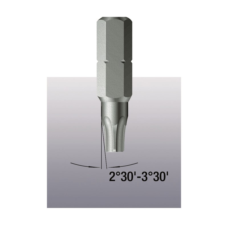 Высококачественные биты TORX®. За счёт конической формы профиля возникает прижимной эффект, который надёжно удерживает винт TORX® на бите. Закалённые до вязкой твёрдости, для универсального применения. Шестигранный хвостовик 1/4", подходит для держателя по стандарту DIN ISO 1173-D 6,3.