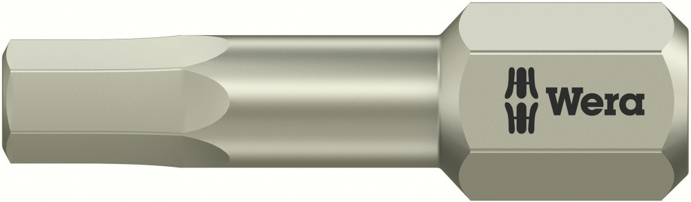Высококачественные биты из специальной стали под внутренний шестигранник. Инструменты Wera Edelstahl изготавливаются из специальной стали, что исключает неприятное распространение контактной ржавчины. Hex-Plus увеличивает площадь контакта с головкой винта. За счёт этого до минимума снижается концентрация напряжения в профиле, что практически исключает вероятность разрушения головки винта. С торсионной зоной: торсионные биты гасят пики нагрузки. Предотвращается преждевременный износ, возрастает срок службы битов. Шестигранный хвостовик 1/4", подходит для держателя по стандарту DIN ISO 1173-D 6,3.