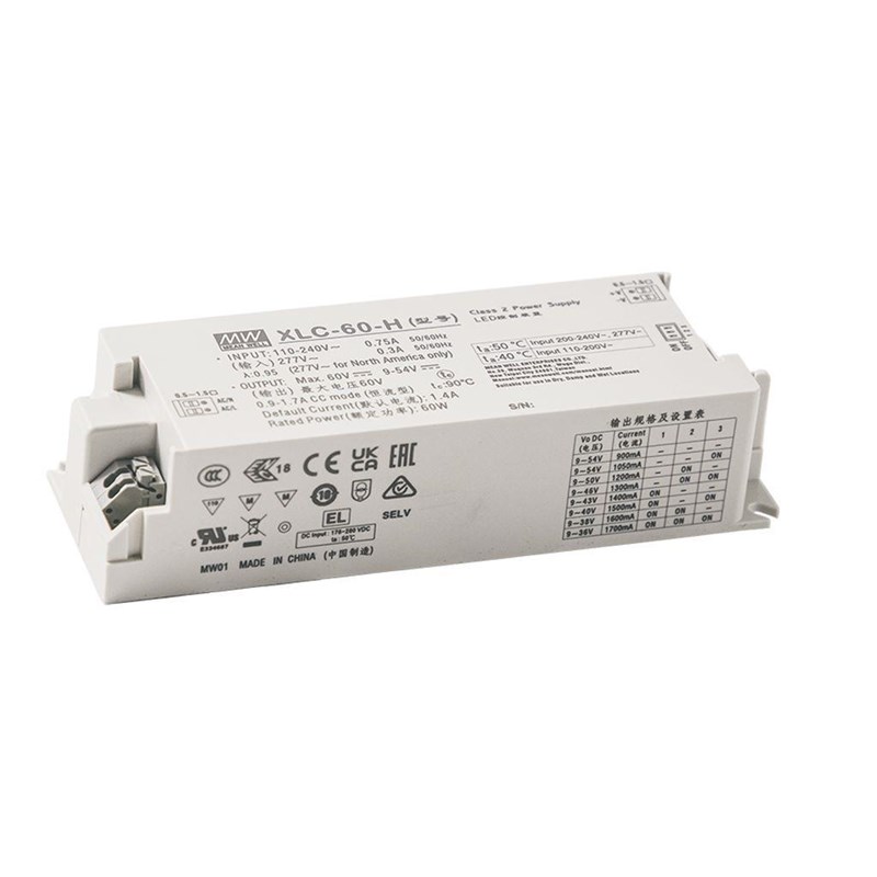 Серия XLC-60 представляет собой светодиодный драйвер мощностью 60 Вт с постоянной мощностью и постоянным выходным напряжением.
