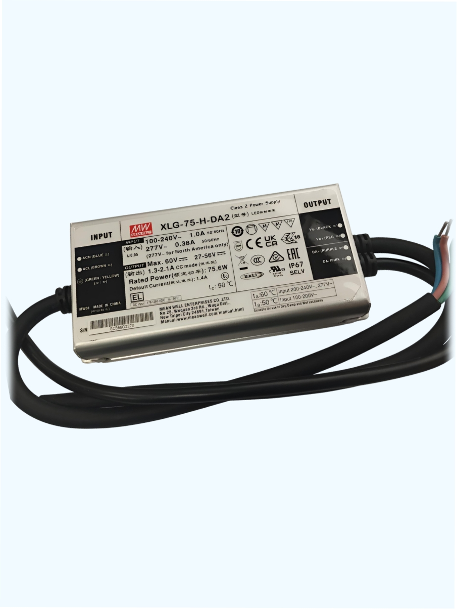 AC-DC, 75.6Вт, вход 100…305В AC, 47…63Гц/142…431В DC, выход 27…56В/1400мА, рег. вых 700…2100мА, изоляция 3750В AC, в корпусе 140х63х32мм, -40…+90°С, DALI-2 димминг