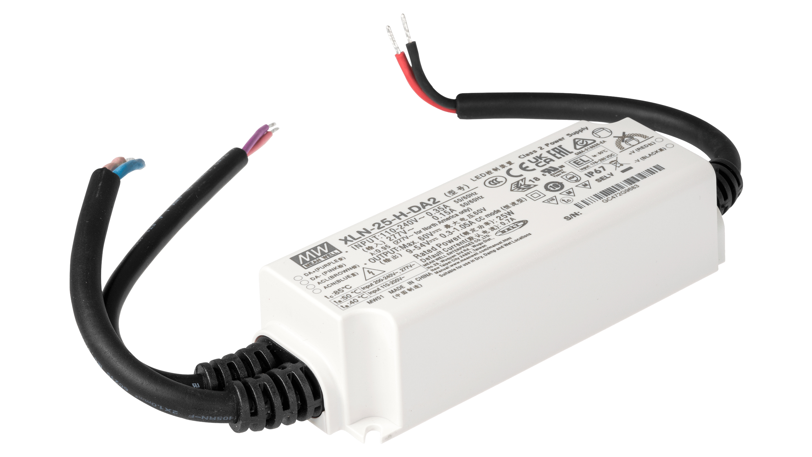 Серия XLN-25 — это светодиодный драйвер мощностью 25 Вт с постоянной выходной мощностью и постоянным напряжением. Он может работать при напряжении от 100 до 305 В переменного тока и выбирать выходной ток от 300 до 1050 мА с помощью NFC-модуля. Благодаря высокому КПД он способен работать при температуре корпуса от -25 до 85 °C в условиях свободной конвекции.