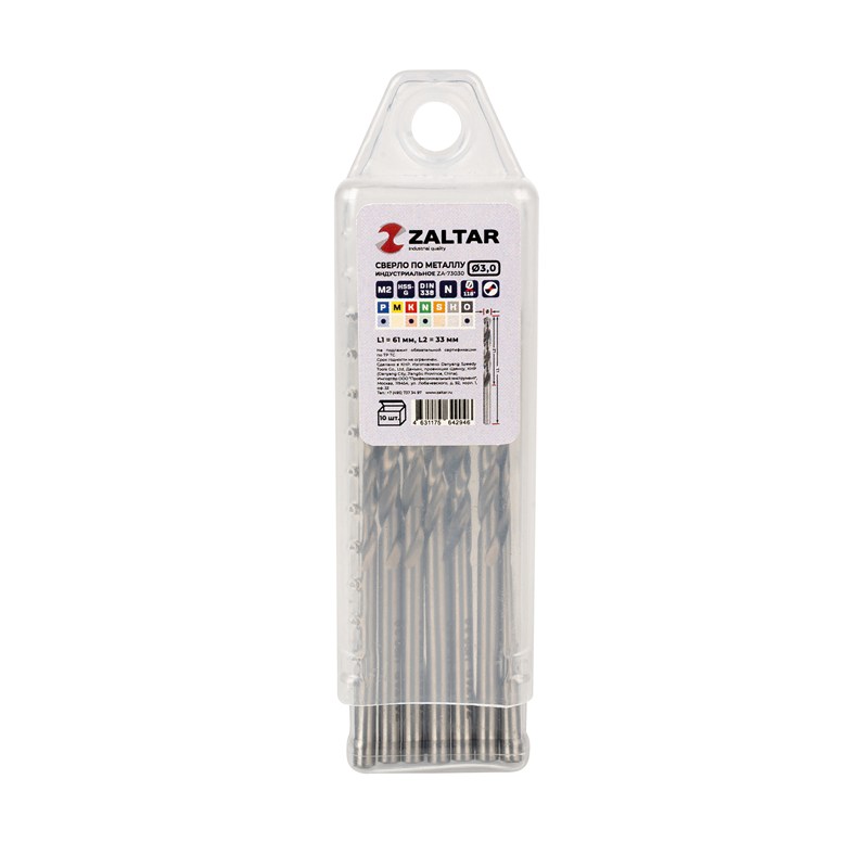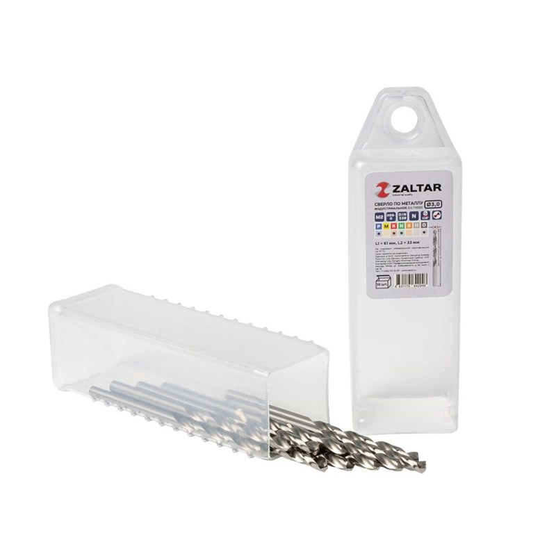Комплект свёрл спиральных по металлу индустриального качества HSS-G M2 (аналог Р6М5) DIN 338 используется для сверления легированной и обычной стали прочностью до 900 Н/мм2, а также алюминия, латуни и пластика.