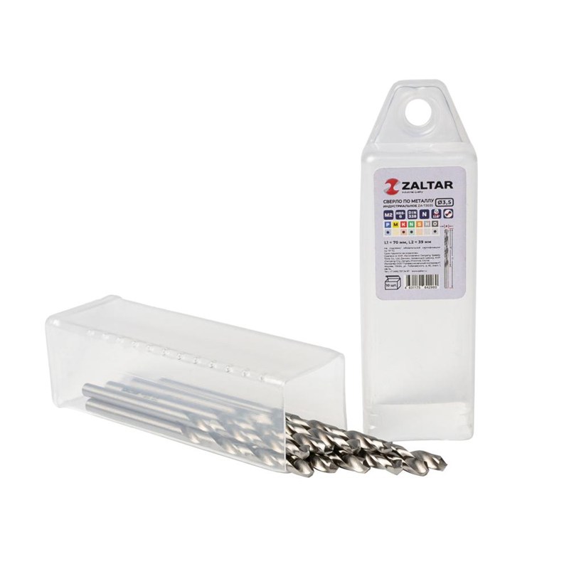 Комплект свёрл по металлу индустриальных, 10 шт, DIN 338, HSS-G, Тип N, 5xD, Ø3.50 мм