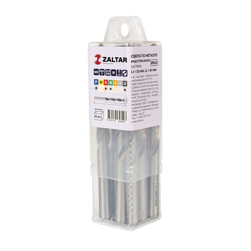 Комплект свёрл по металлу индустриальных, 10 шт, DIN 338, HSS-G, Тип N, 5xD, Ø9.00 мм