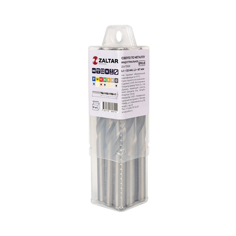 Комплект свёрл по металлу индустриальных, 10 шт, DIN 338, HSS-G, Тип N, 5xD, Ø10.00 мм