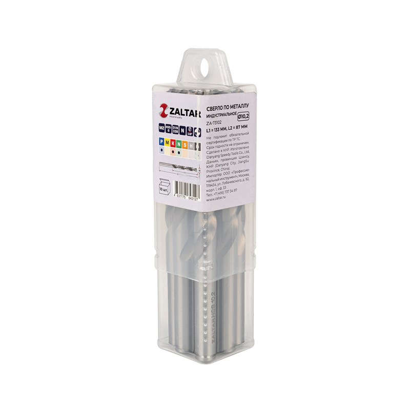 Комплект свёрл по металлу индустриальных, 10 шт, DIN 338, HSS-G, Тип N, 5xD, Ø10.20 мм