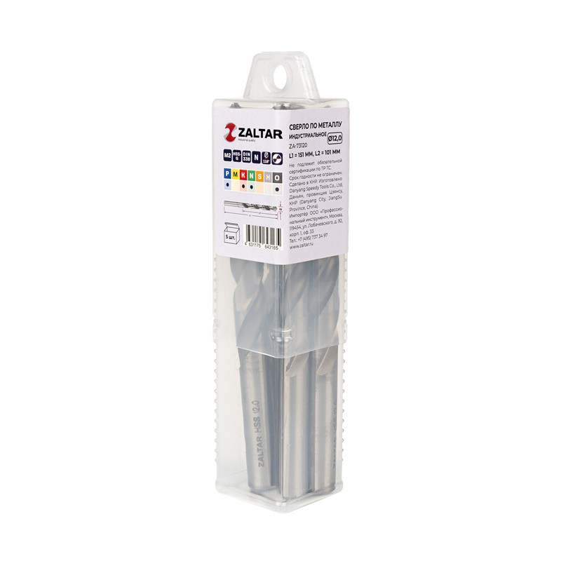 Комплект свёрл спиральных по металлу индустриального качества HSS-G M2 (аналог Р6М5) DIN 338 используется для сверления легированной и обычной стали прочностью до 900 Н/мм2, а также алюминия, латуни и пластика.