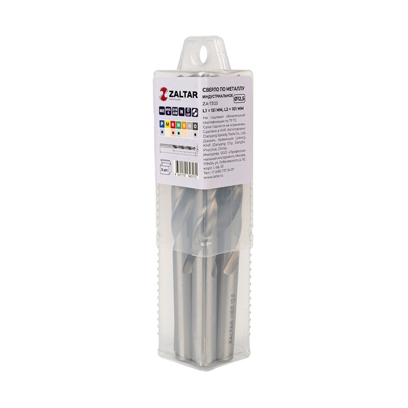 Комплект свёрл по металлу индустриальных, 5 шт, DIN 338, HSS-G, Тип N, 5xD, Ø12.50 мм