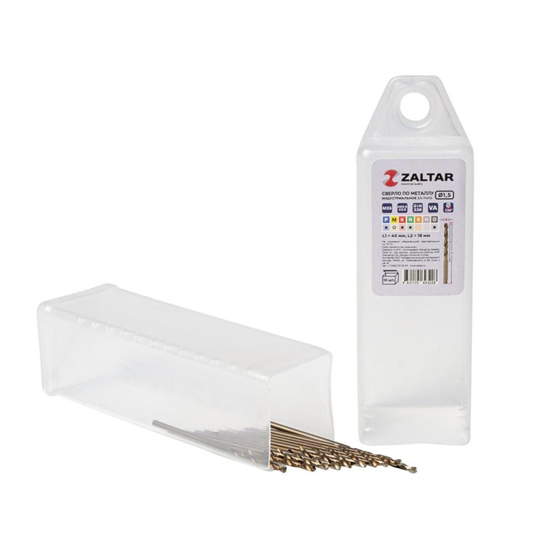 Комплект свёрл спиральных по металлу индустриального качества HSS-E Co5 M35 (аналог Р6М5К5) DIN 338 используется для сверления легированной и обычной стали прочностью от 900 Н/мм2 до 1100 Н/мм2, а также алюминия, нержавеющей стали, латуни и пластика.