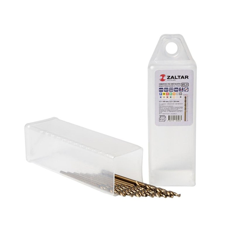 Комплект свёрл по металлу индустриальных, 10 шт, DIN 338, HSS-E Co5, Тип VA, 5xD, Ø2.00 мм