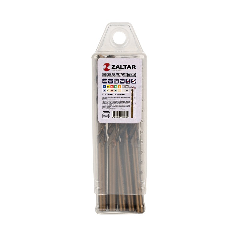 Комплект свёрл по металлу индустриальных, 10 шт, DIN 338, HSS-E Co5, Тип VA, 5xD, Ø4.20 мм