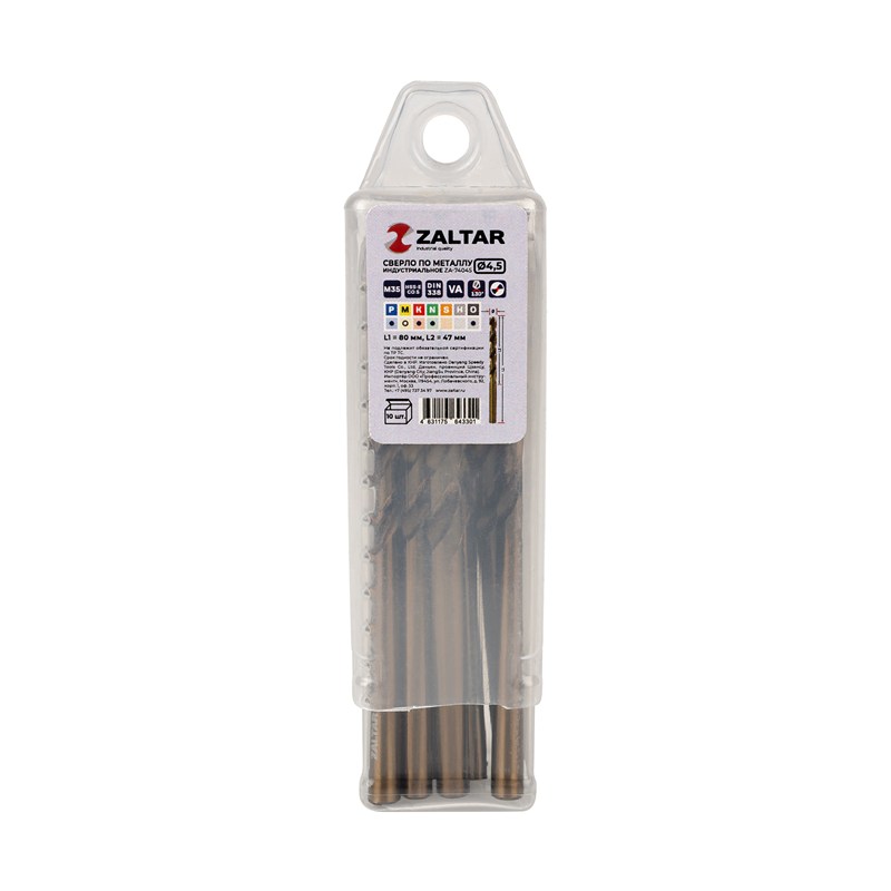 Комплект свёрл по металлу индустриальных, 10 шт, DIN 338, HSS-E Co5, Тип VA, 5xD, Ø4.50 мм
