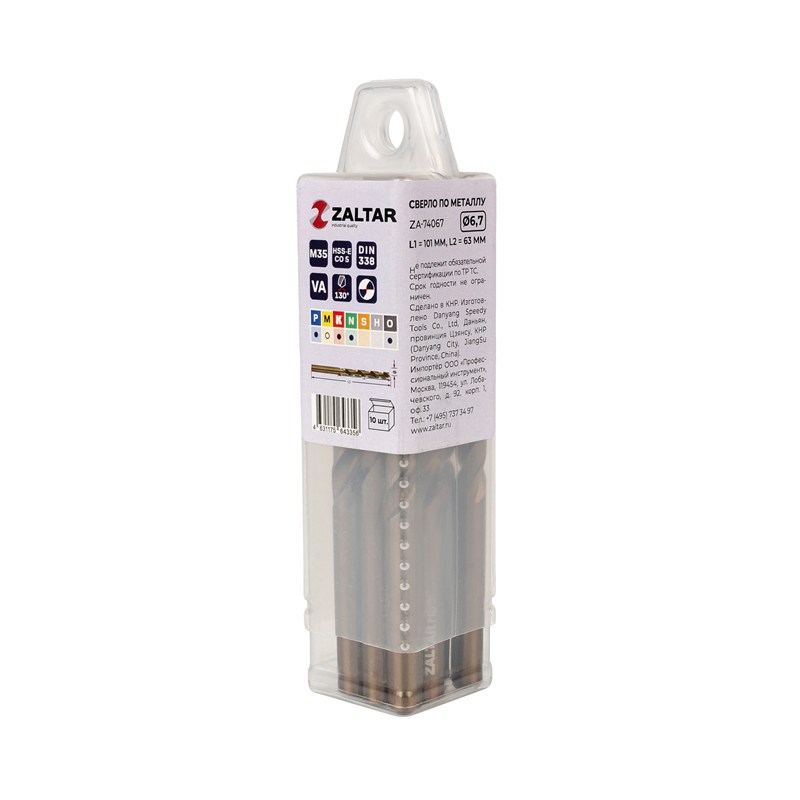 Комплект свёрл по металлу индустриальных, 10 шт, DIN 338, HSS-E Co5, Тип VA, 5xD, Ø6.70 мм