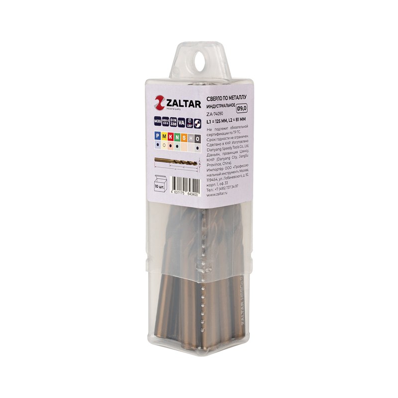 Комплект свёрл по металлу индустриальных, 10 шт, DIN 338, HSS-E Co5, Тип VA, 5xD, Ø9.00 мм