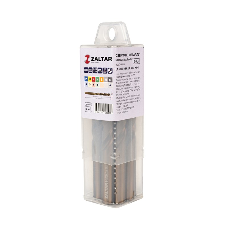 Комплект свёрл по металлу индустриальных, 10 шт, DIN 338, HSS-E Co5, Тип VA, 5xD, Ø9.50 мм