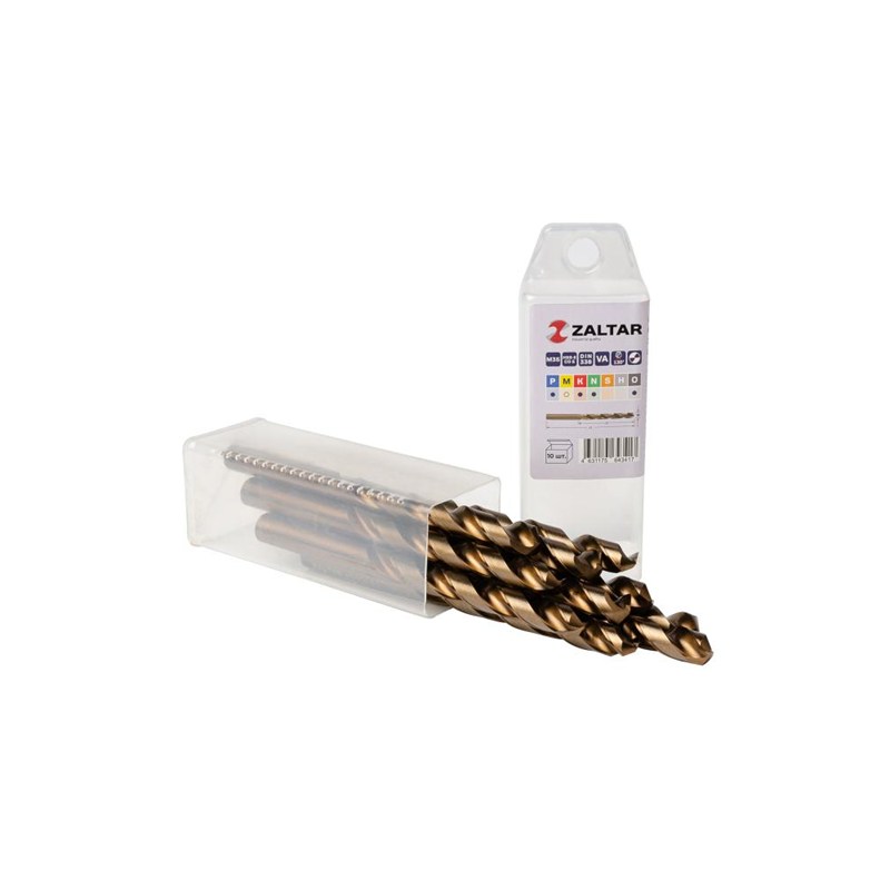 Комплект свёрл спиральных по металлу индустриального качества HSS-E Co5 M35 (аналог Р6М5К5) DIN 338 используется для сверления легированной и обычной стали прочностью от 900 Н/мм2 до 1100 Н/мм2, а также алюминия, нержавеющей стали, латуни и пластика.