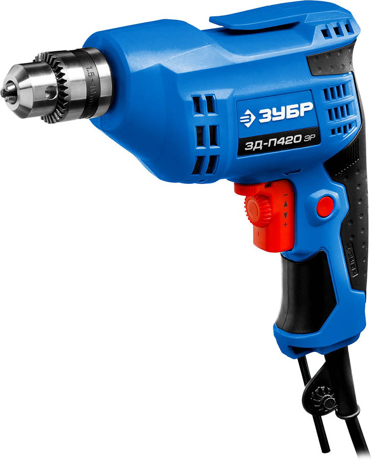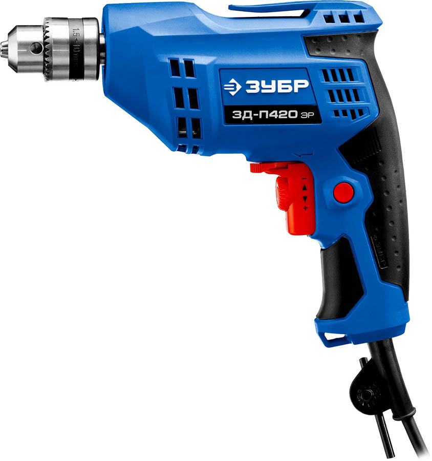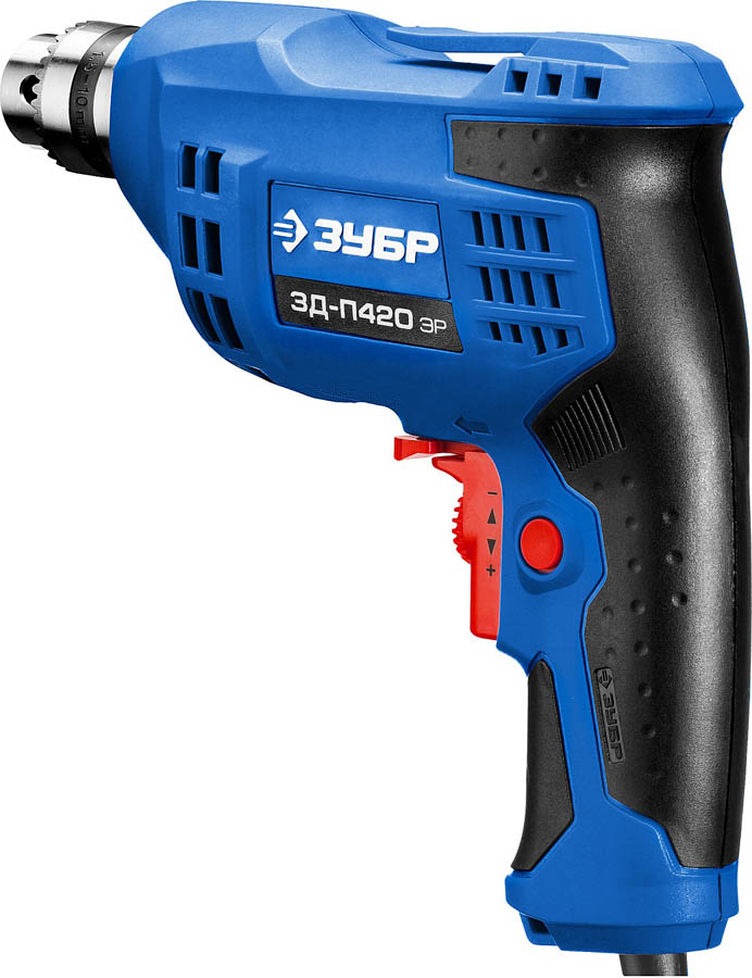 Дрель безударная реверсивная, ЗУБР Профессионал ЗД-П420 ЭР, ЭР (электронная регулировка скорости), ключевой патрон, 10 мм, 420 Вт
