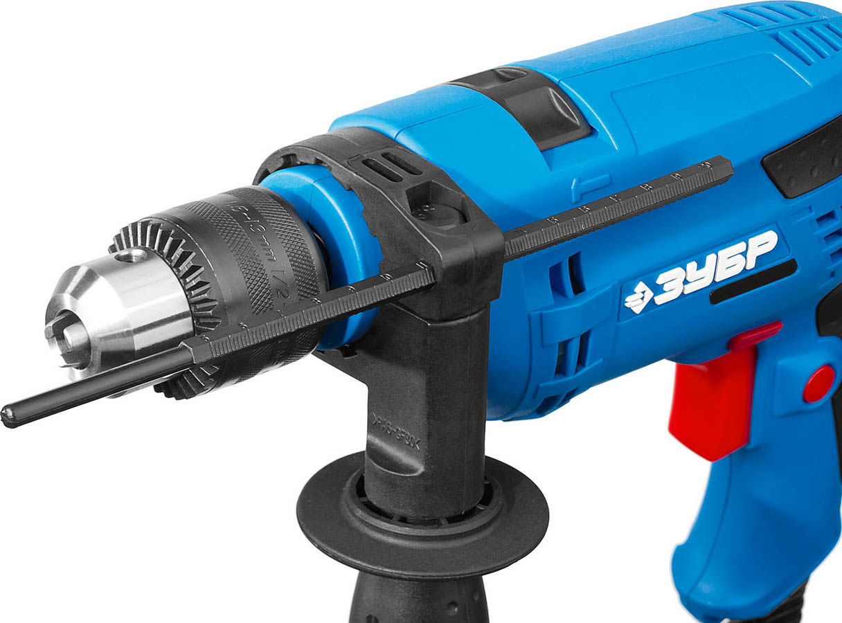 Дрель ударная электрическая ЗУБР ЗДУ-580 ЭРМ2, предназначена для сверления отверстий в различных материалах (дерево, сталь и т. д.). Удобная дрель с качественным кулачковым патроном, плавной регулировкой оборотов и надежной конструкцией на подшипниках - лучший подарок мастеру. Функция сверления с ударом, широкий диапазон регулировки частоты вращения, удобная дополнительная рукоятка - все, что нужно для качественной работы. Надежный инструмент для эффективной, качественной работы . Удобная дрель для различных работ (сверление, заворачивание, перемешивание). Функция сверления с ударом позволяет выполнять отверстия в кирпиче и легком бетоне. Электронная регулировка оборотов в широком диапазоне расширяет возможности использования изделия. Изменение частоты вращения степенью нажатия на выключатель обеспечивает как плавное начало сверления во избежание увода сверла, так и быстрое сверление. Надежная конструкция на шариковых подшипниках для минимального биения шпинделя.
