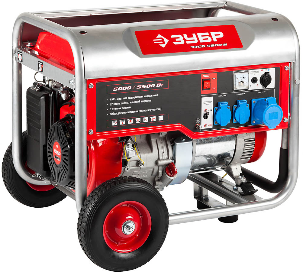 ЗУБР 5/5.5 кВт, однофазный, синхронный, щеточный, генератор бензиновый ЗЭСБ-5500-Н