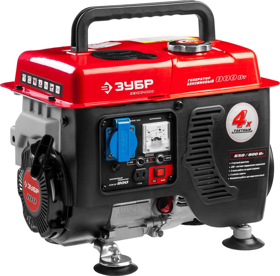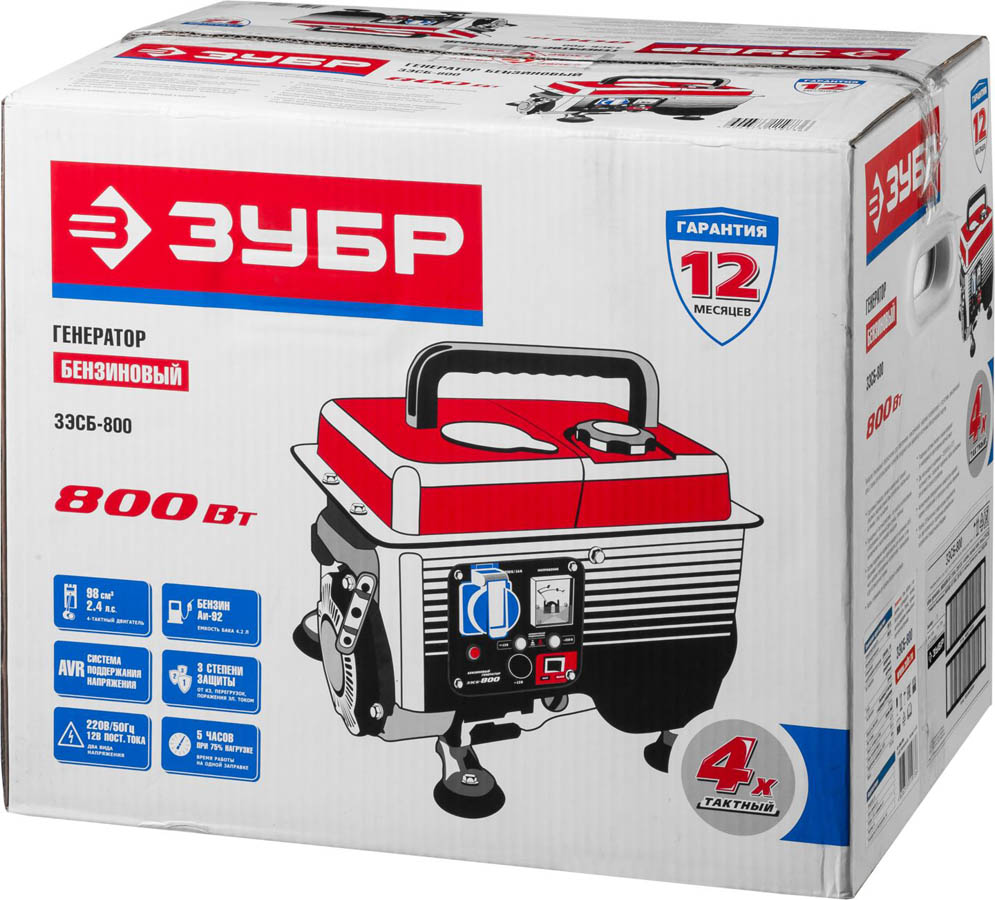 Бензиновый электрогенератор ЗУБР ЗЭСБ-800, предназначен для обеспечения электрической энергией потребителей в отсутствии электрической сети, а также для использования в качестве резервного или аварийного источника электрической энергии. Наиболее популярный генератор для загородного дома. Позволит обеспечить энергией нужных Вам потребителей или переждать отключение электричества без потери комфорта. 4-тактный двигатель - простота использования и обслуживания, длительный срок службы, отличные экономические и экологические показатели. Электрический стартер облегчает запуск генератора в любых условиях. Система поддержания параметров выходного напряжения (AVR) обеспечивает стабильность характеристик для питания, в том числе наиболее требовательных потребителей - компьютеров и другой электронной техники. Раздельные системы питания и смазки избавляют от необходимости приготовления рабочей смеси. Система контроля и блокировки работы при отсутствии или пониженном уровне масла. Два типа выходного напряжения - 220В/50Гц