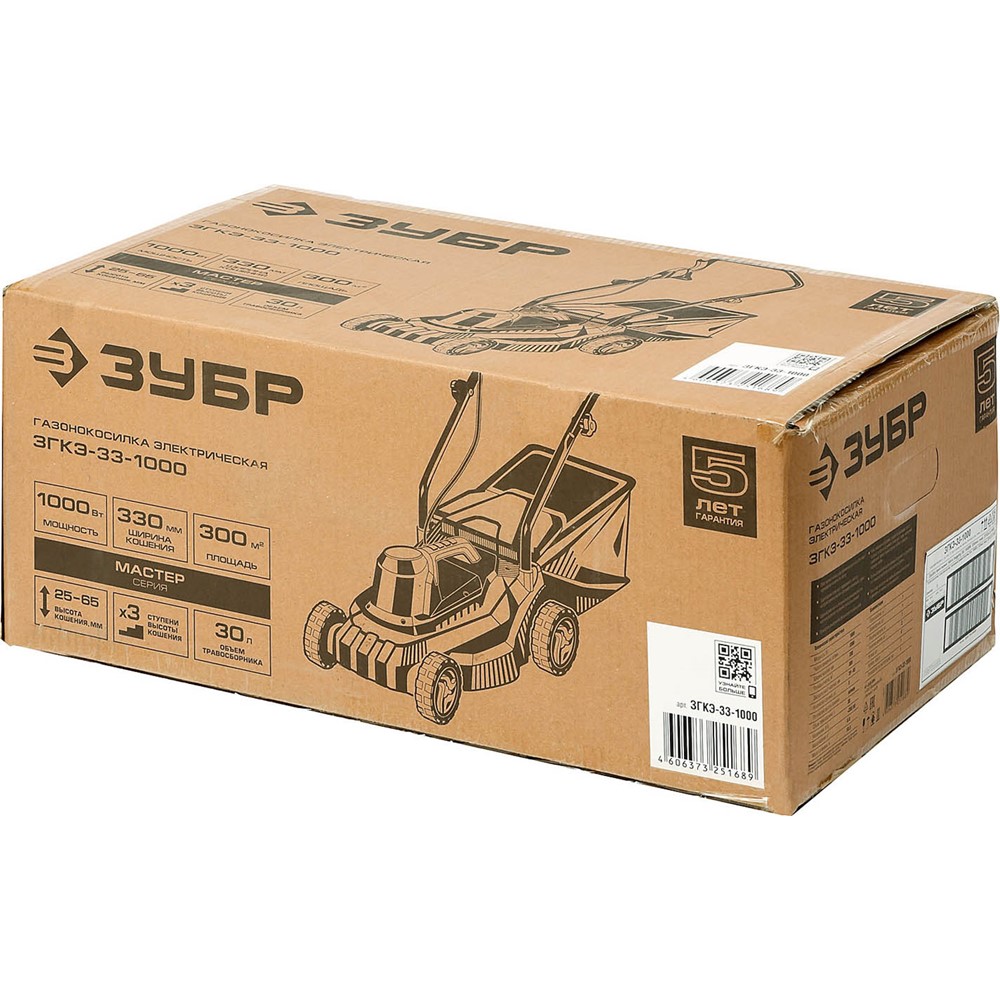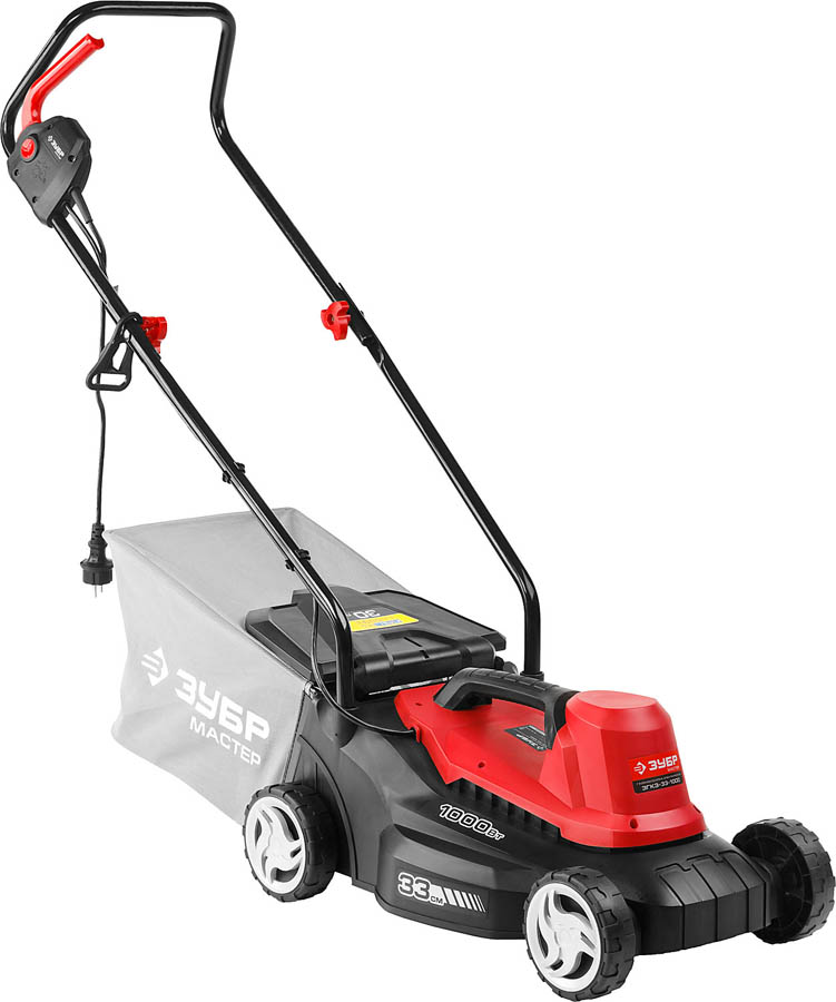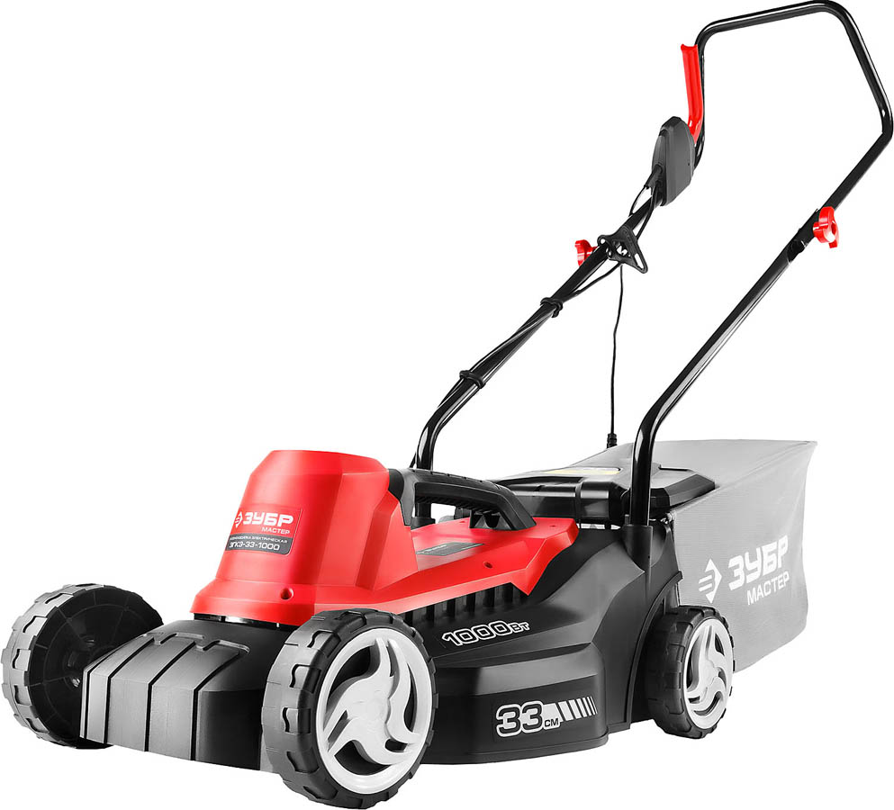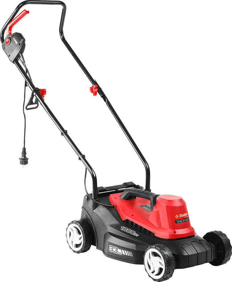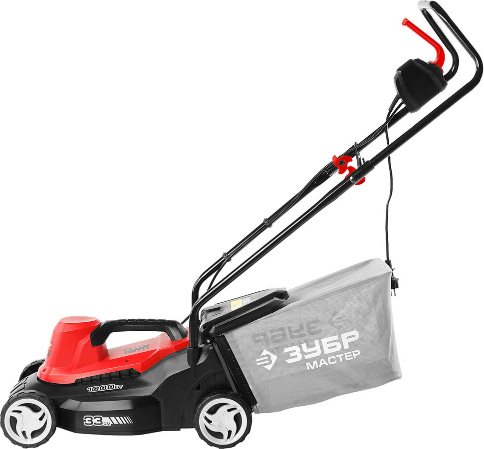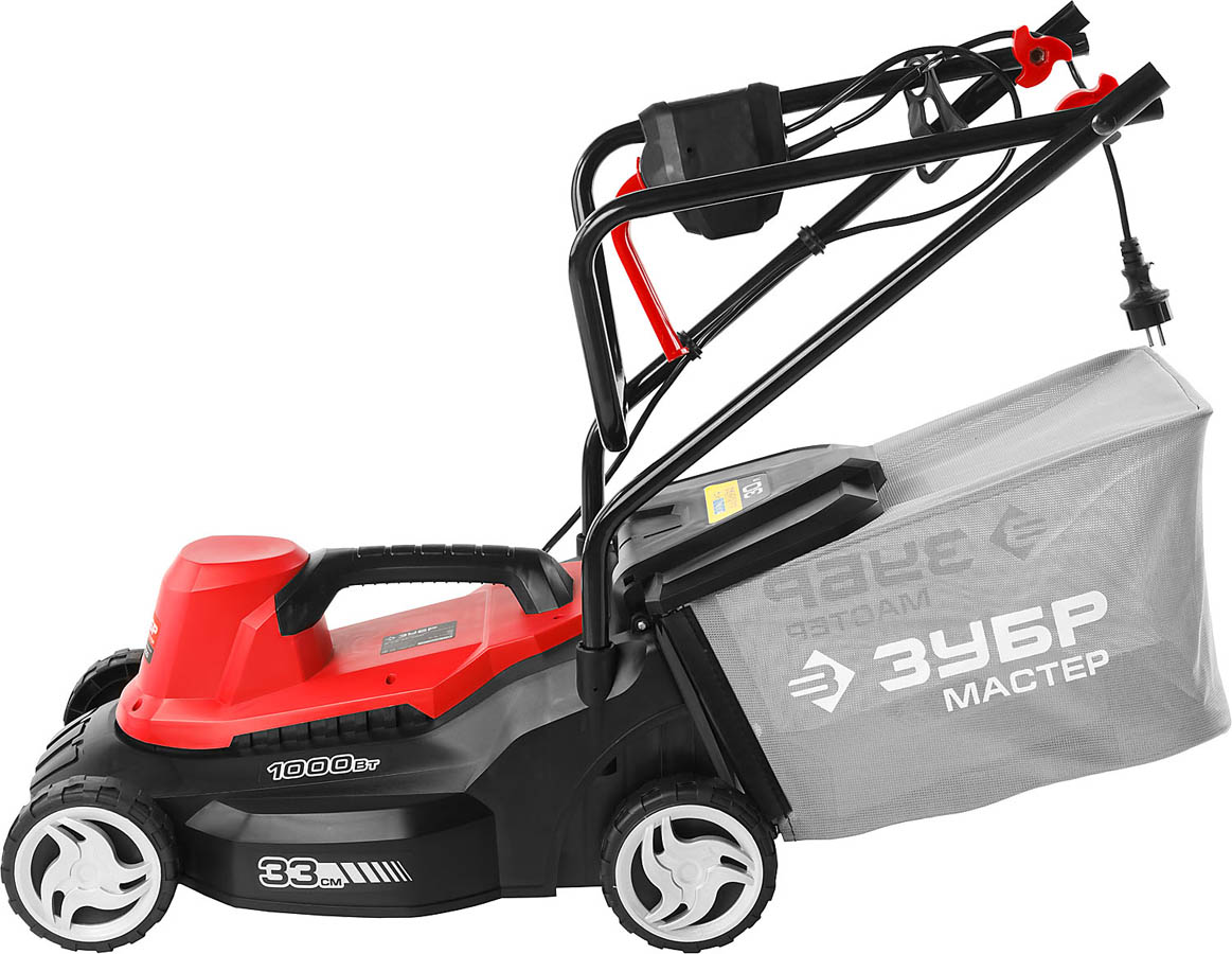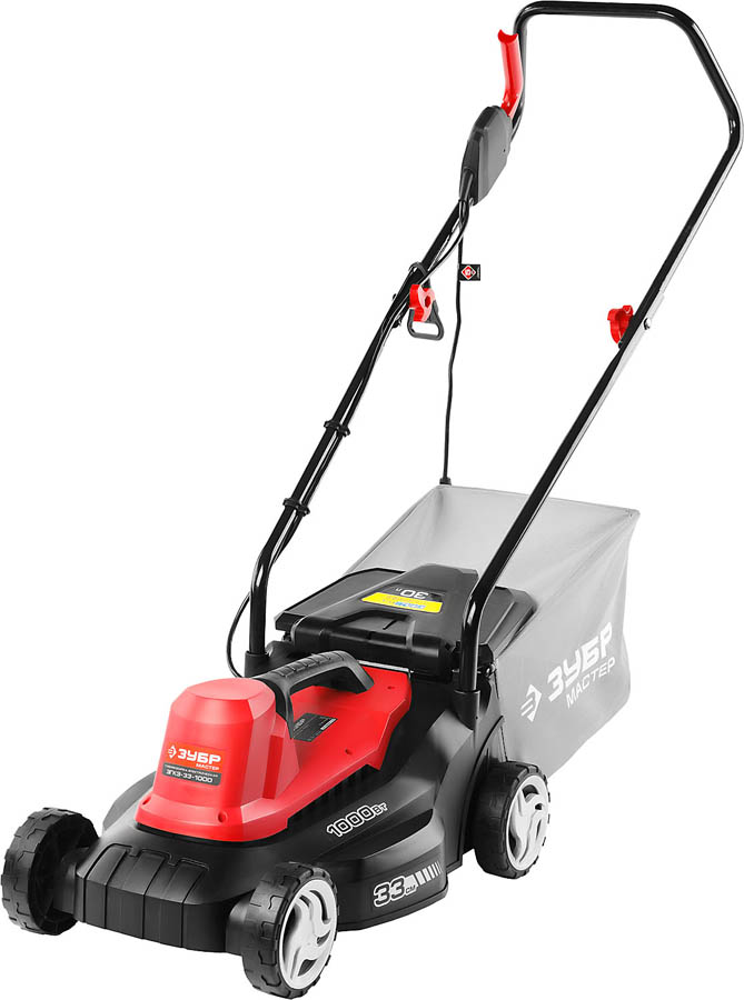 Газонокосилка электрическая, ЗУБР ЗГКЭ-33-1000, роторная, ш/с 330 мм, регулировка высоты 25-65 мм, травосборник 30 л, 1000 Вт