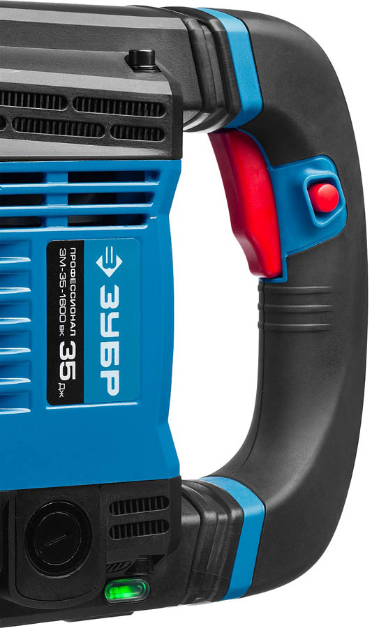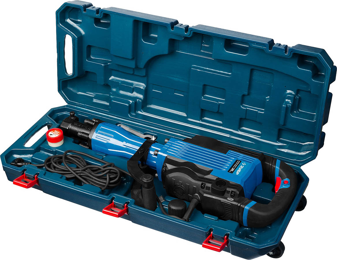 Отбойный молоток электрический, бетонолом HEX 30 ЗУБР ЗМ-35-1600 ВК, предназначен для разрушения конструкций из бетона, железобетона, кирпича и камня, долбления уплотненного грунта, асфальтовых, бетонных и плиточных покрытий и других строительных работ. Серьезное изделие для выполнения необходимых работ. Легкий, в своем классе, отбойный молоток, обладающий высокой энергией удара. Патрон НЕХ для установки широкого спектра профессионального расходного инструмента и быстрой замены в процессе работы. Антивибрационная система значительно снижает вредное воздействие вибрации на оператора даже при длительной работе. Большая сила удара генерируется механизмом без давления на инструмент. Регулируемая дополнительная рукоятка обеспечивает удобный и надежный хват в любом положении изделия. Корпус редуктора из магниевого сплава значительно снижает вес изделия и эффективно отводит тепло от наиболее нагруженных частей. Индикатор включения в сеть. Противоскользящее покрытие рукояток для надежного удержания. Быстрый доступ к