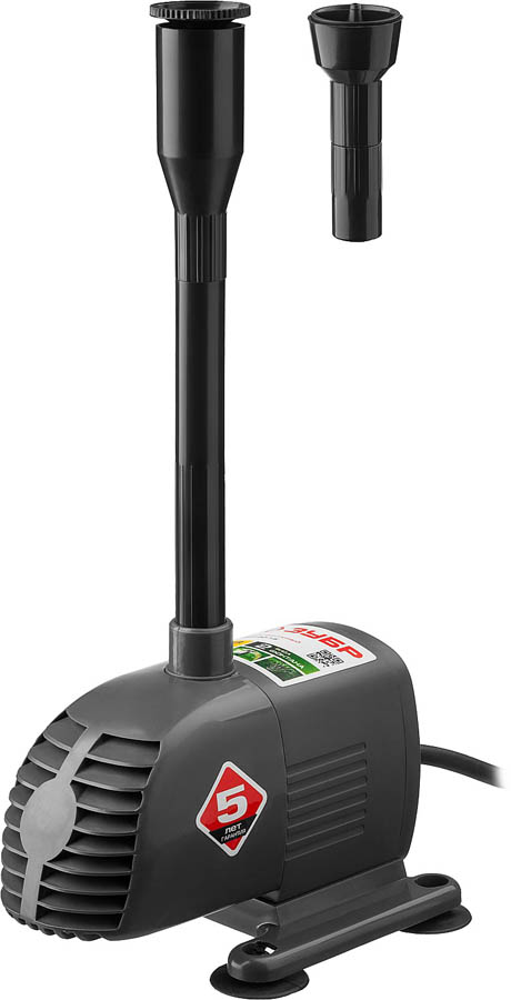 Насос фонтанный, ЗУБР ЗНФЧ-20-1.6, для чистой воды, напор 1,6 м, насадки: колокольчик, каскад, 28 Вт, 20 л/мин