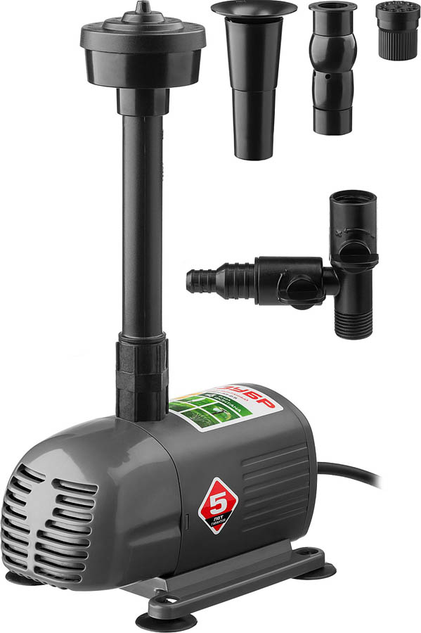 Насос фонтанный, ЗУБР ЗНФЧ-33-2.5, для чистой воды, напор 2,5 м, насадки: колокольчик, гейзер, каскад, 50 Вт, 33 л/мин