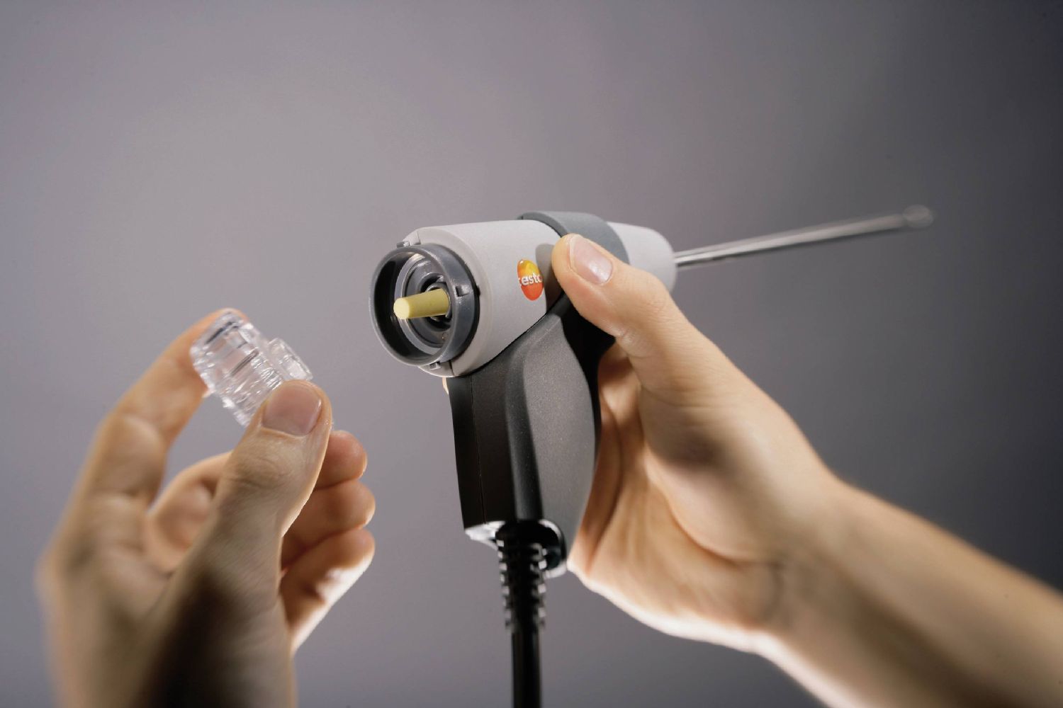 Модульный зонд отбора пробы, одобренный TÜV, длина 180 мм, оснащен системой легкой замены трубки зонда. Термопара NiCr-Ni, встроенная в зонд, позволяет измерять температуры до +500 °C. Канал дымового газа и канал температуры можно удобно подключить к прибору с помощью байонетного соединения. Кроме того, встроенный фильтр защищает прибор и его сенсоры от загрязнения.
