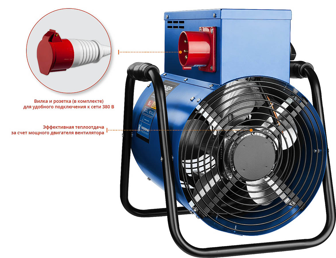 Тепловая пушка электрическая ЗУБР ЗТП-9, предназначена для генерации горячего воздуха, который может быть использован для обогрева, сушки бытовых и промышленных помещений.