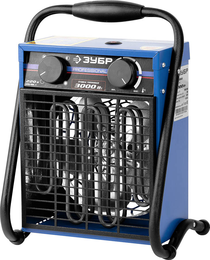 ЗУБР 3/1,5 кВт, гладкий ТЭН, пушка тепловая электрическая ЗТПЭ-3000-Ф_М2 Профессионал